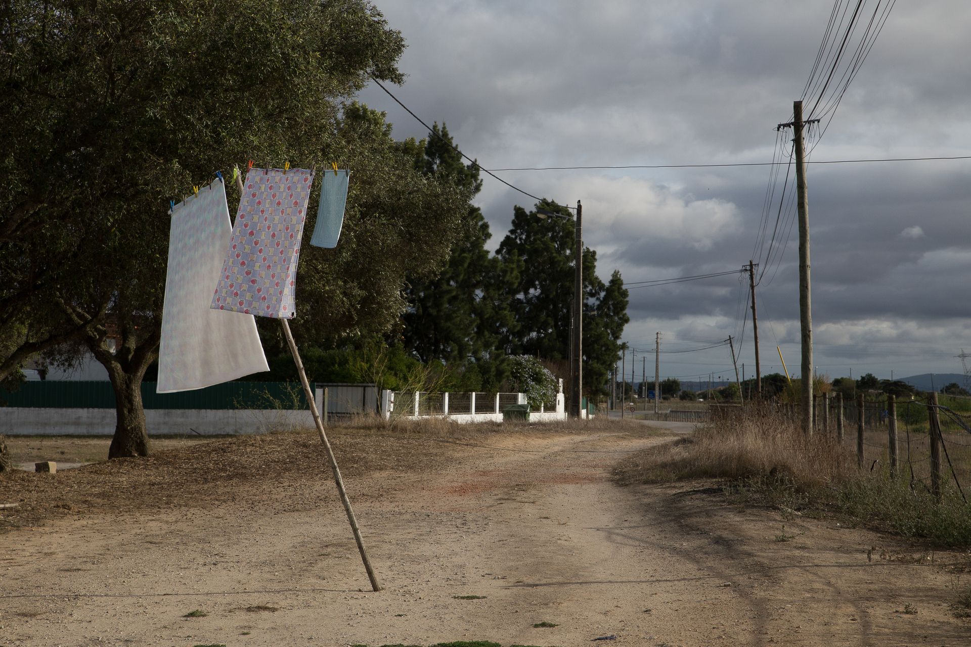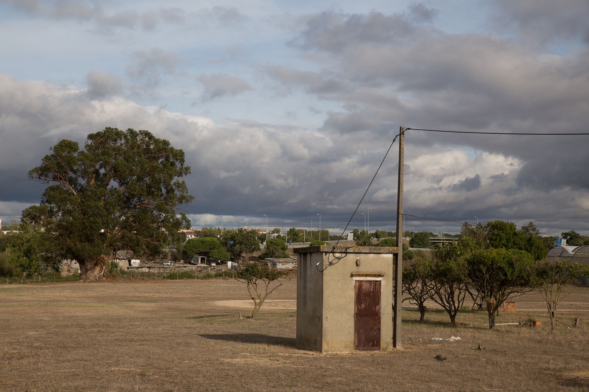 The work began between 2020 and 2022 as a territorial study of the Setúbal Peninsula — tracing a route along the estuarine edge of the Tagus before crossing inland through rural and suburban landscapes. What started as a geographical movement gradually became an inquiry into margins, infrastructures, informal architectures, and the quiet negotiations between land, labor, and habitation.